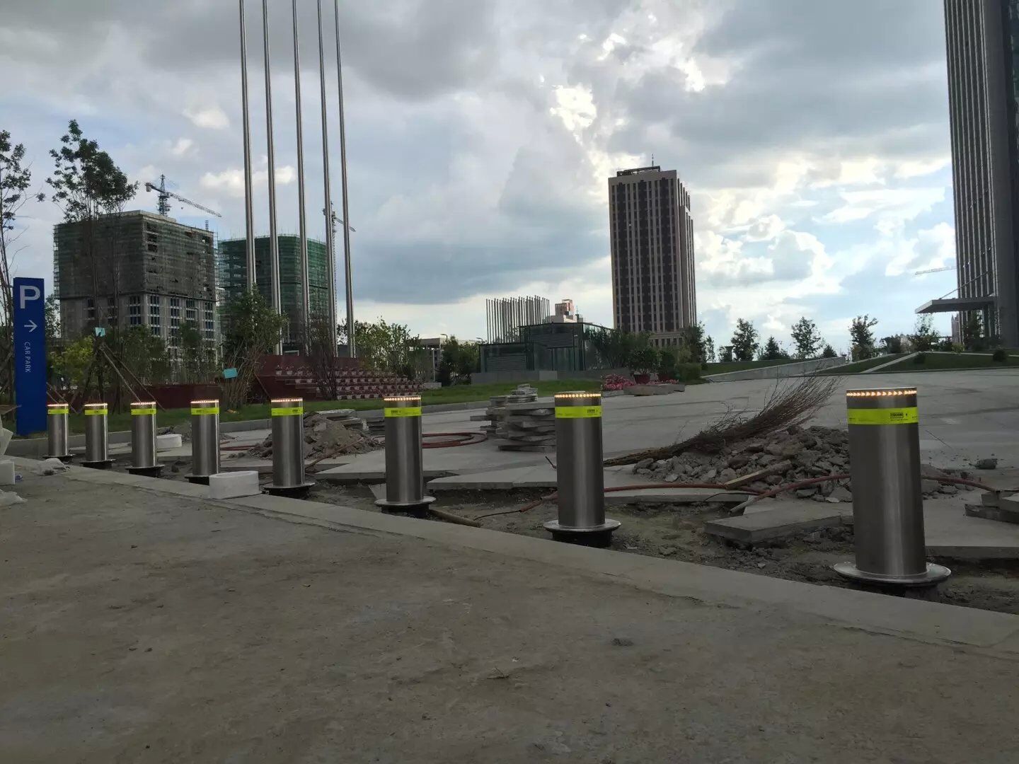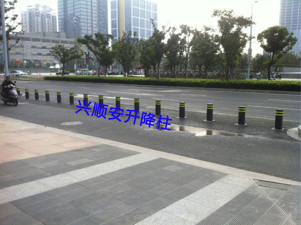 设置于路面的障碍设施,通过此类产品从而实现对道路车辆的管控,新型可遥控或者按钮操控的升降路障是路障产品中最具有代表性的产品,升降柱是一种为路面车流提供更灵活可行的管控工具,主要特点是:可遥控或按钮控制升降,工作速度快,升起和下降在2-5秒之间,每个升降柱都是一个独立单元,采用微型电机与一体化液压缸装配而构成一个完整的微型液压驱动系统,通过结构件将该系统安装于升降柱体内,完美地实现了微型机电液一体化。
