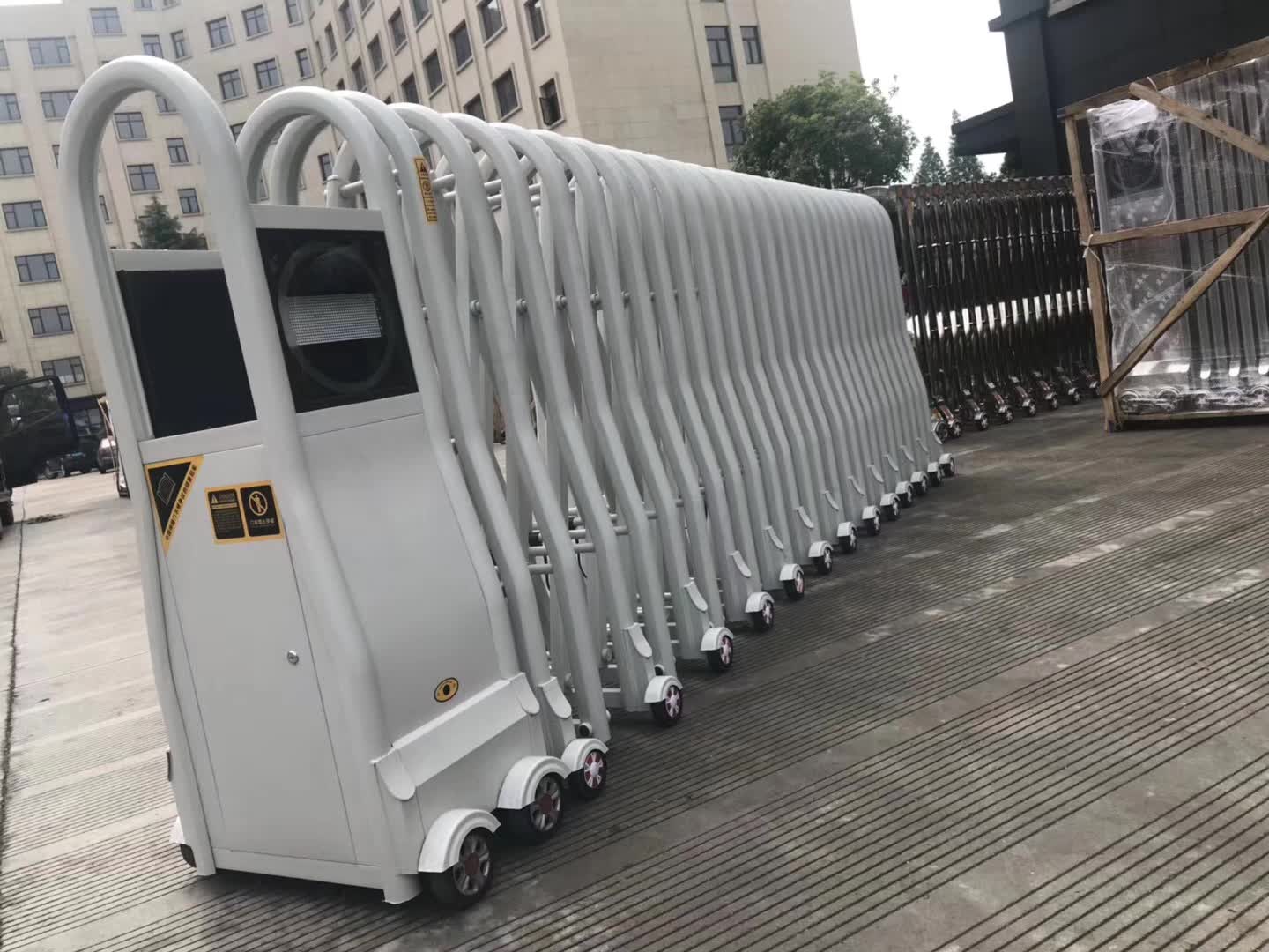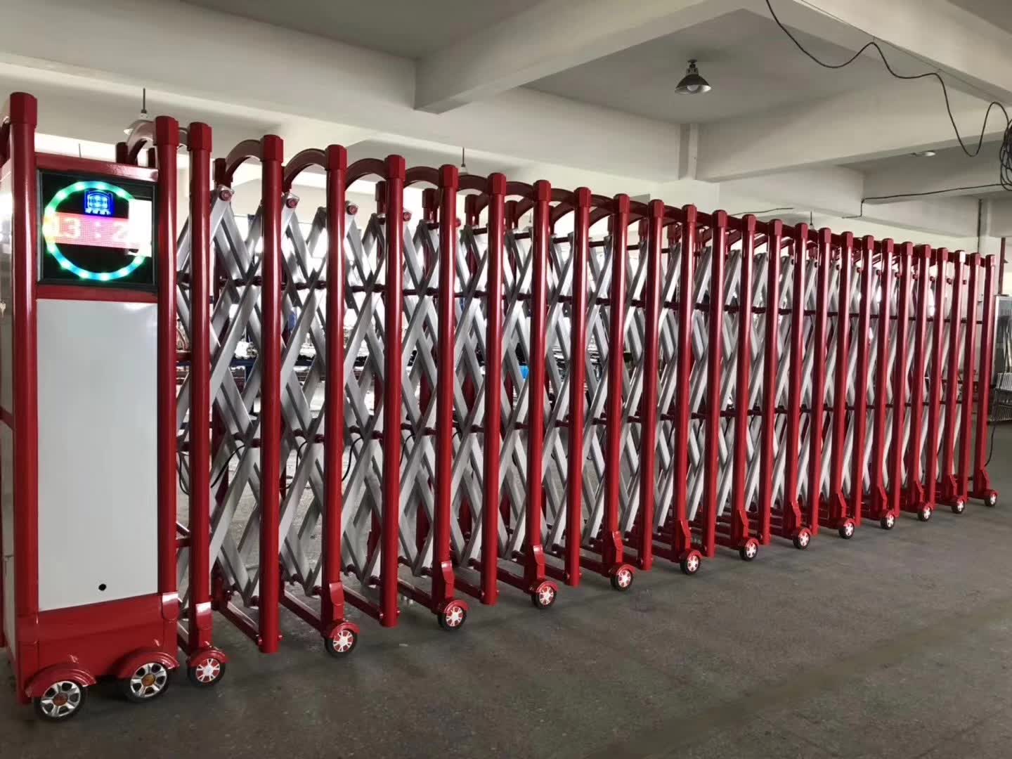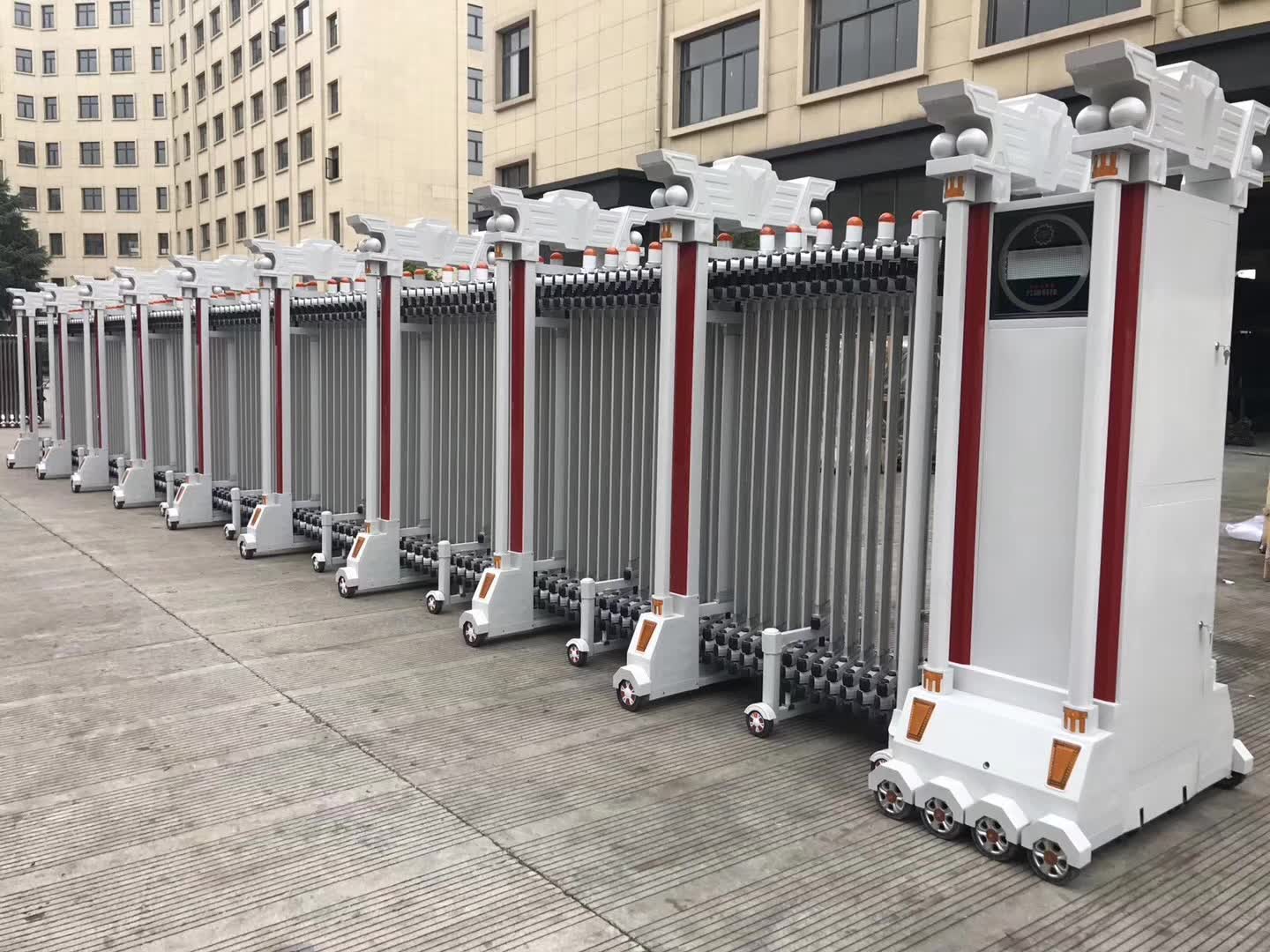 电动伸缩门特点:1.电动伸缩门的智能红外探头防撞装置,遇人或异物30-50cm,可自行返回运行,从而保障车辆及行人的安全。